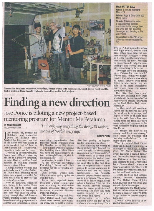 Lighthouse Bikes, an addition to Sonoma Lighthouse Christian Church, was first introduced to Petaluma City Schools and Mentor Me as an Innovative Project Based Mentoring Program in January of 2014.
